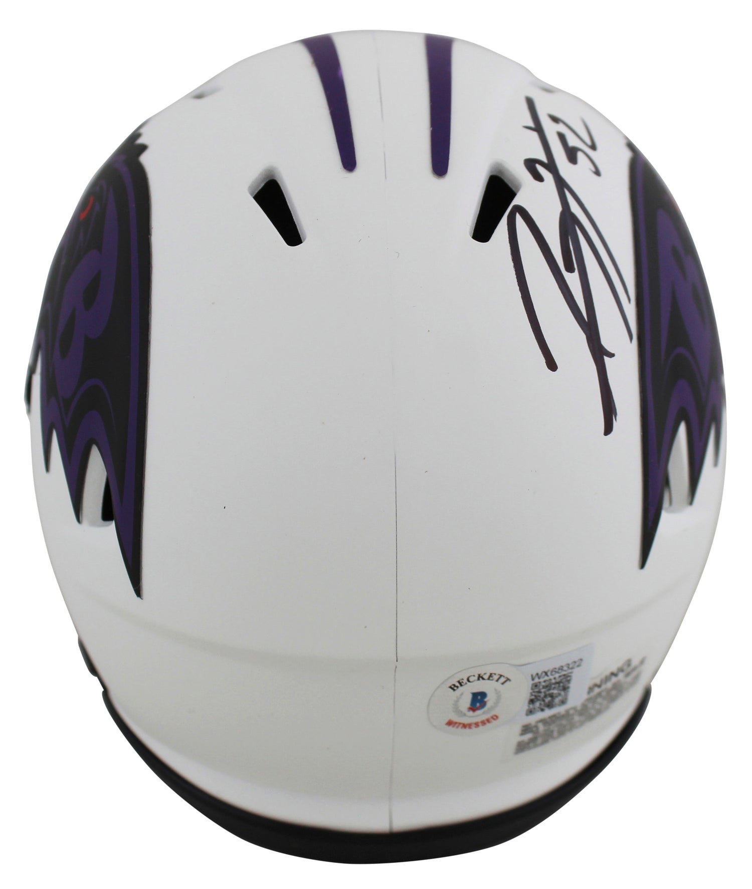 Own a piece of football history with this Ray Lewis Autographed Baltimore Ravens Alternate Lunar Speed Mini Helmet. A true collector's item, this helmet has been personally signed by Ray Lewis, one of the most dominant linebackers in NFL history. Certified 100% authentic by Beckett Authentication Services (BAS), this autographed mini helmet is perfect for die-hard Ravens fans and memorabilia collectors alike.