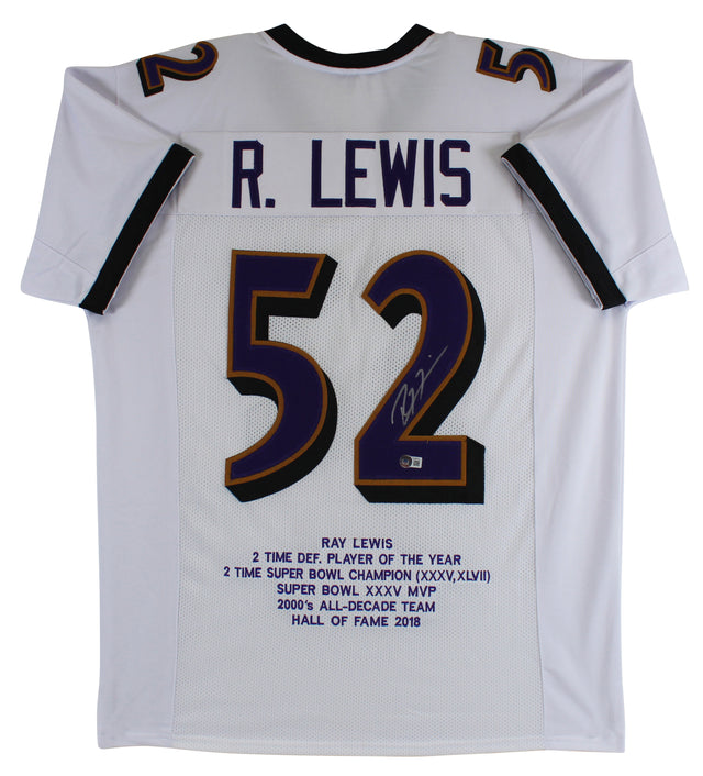 Ravens Ray Lewis Authentic Signed White Pro Style Stat Jersey BAS Witnessed