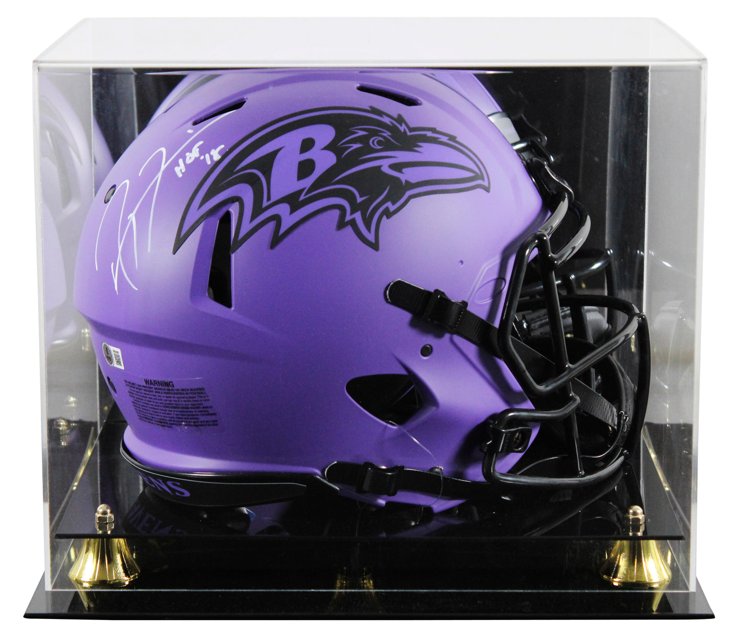 Honor one of the NFL’s most legendary defensive icons with this Autographed Alternate Rave Riddell Full Size Speed Proline Helmet, personally signed by Ray Lewis of the Baltimore Ravens. This premium collector’s item is not only a must-have for ravens fans, but it also comes encased in a striking UV mirrored back acrylic display case, making it ready for immediate display in your home, office, or fan cave.