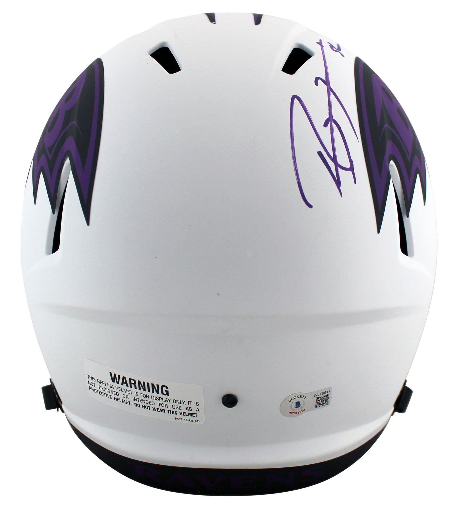 Ravens Ray Lewis Signed Lunar Full Size Speed Rep Helmet w/ Case BAS Witnessed