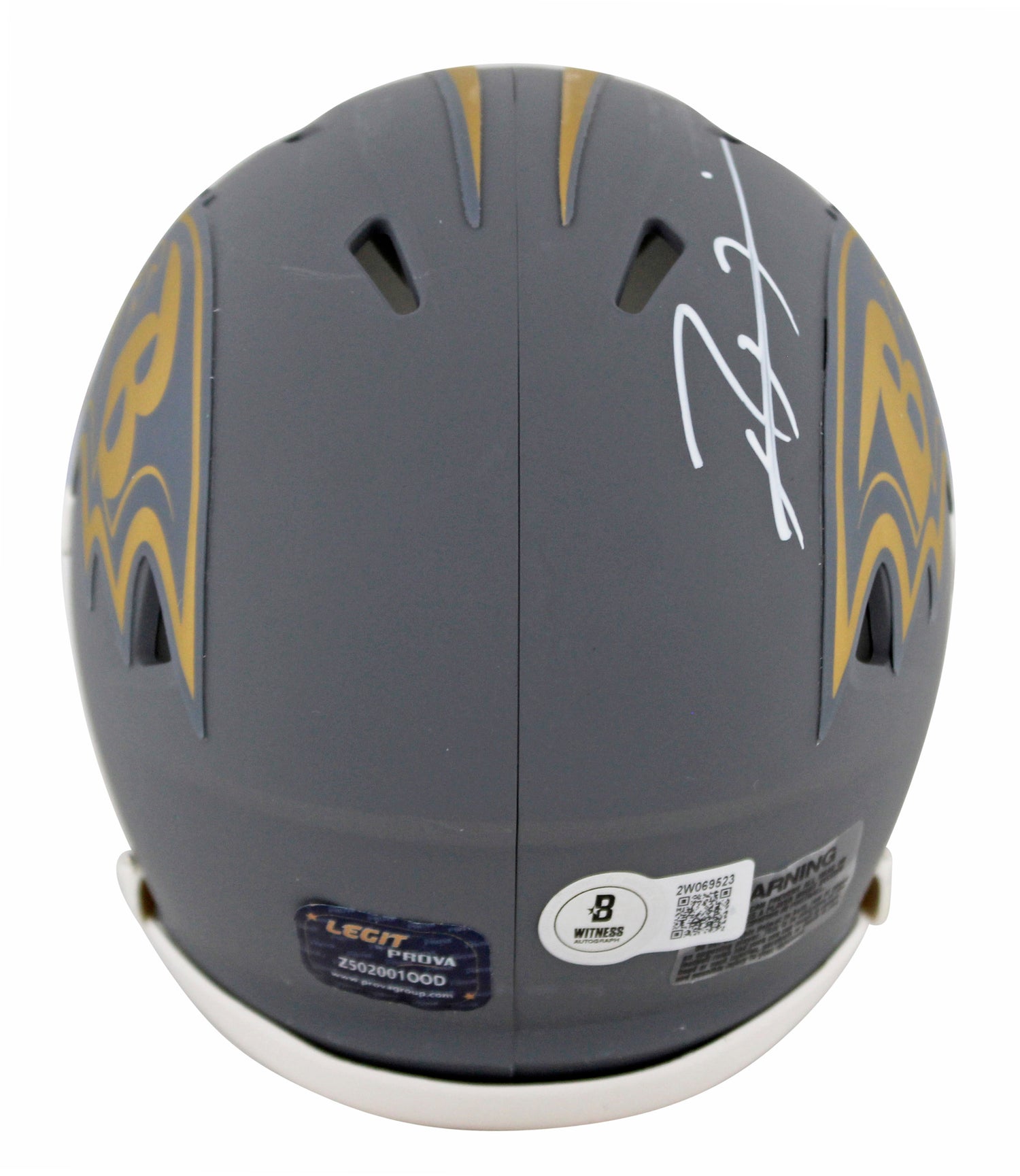 Ravens Ray Lewis Signed Slate Speed Mini Helmet W/ Case w/ White Sig BAS Witness
