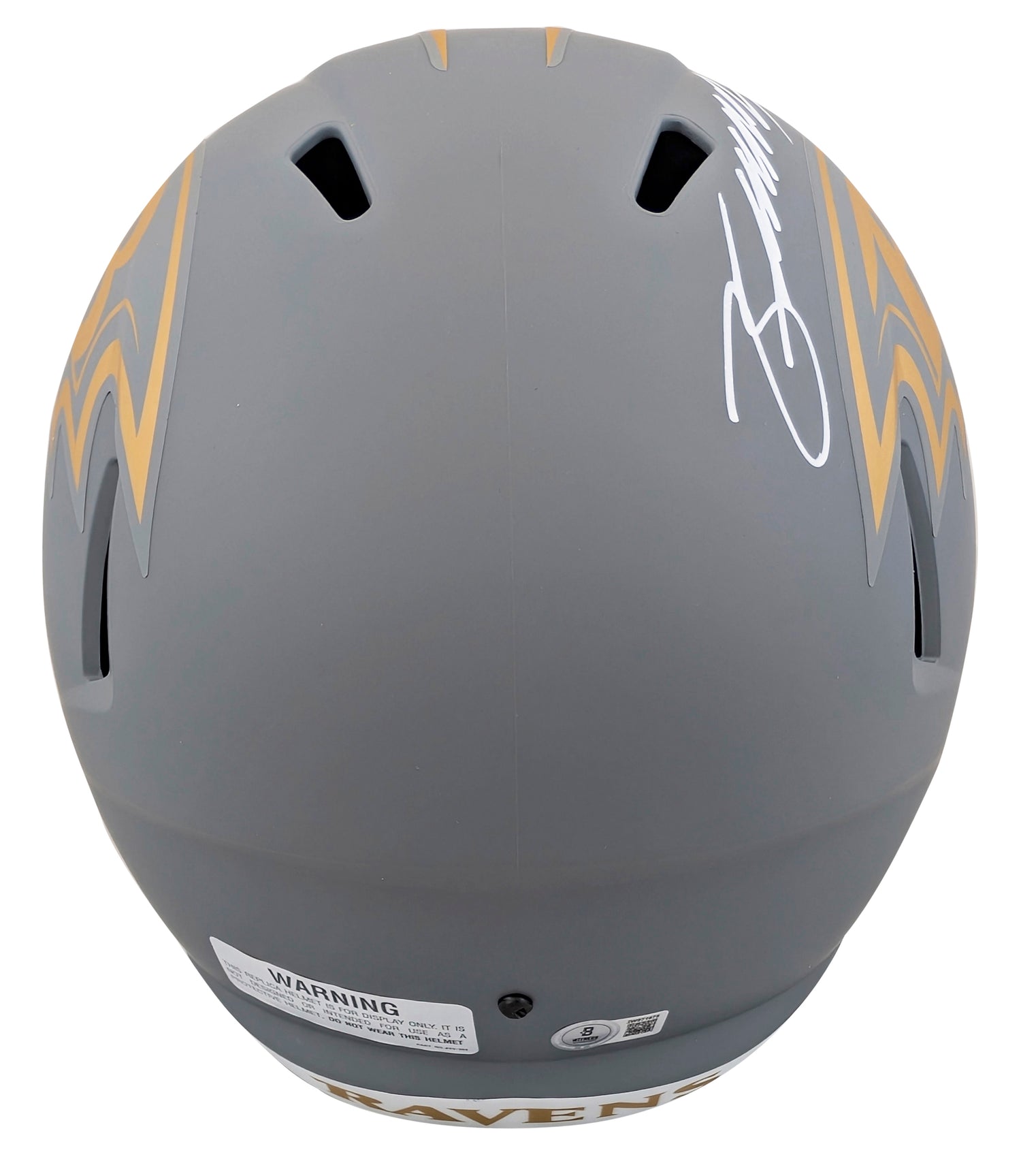 - Alternate Slate Riddell Full Size Speed Replica Helmet offers a bold and sleek twist on classic Ravens gear