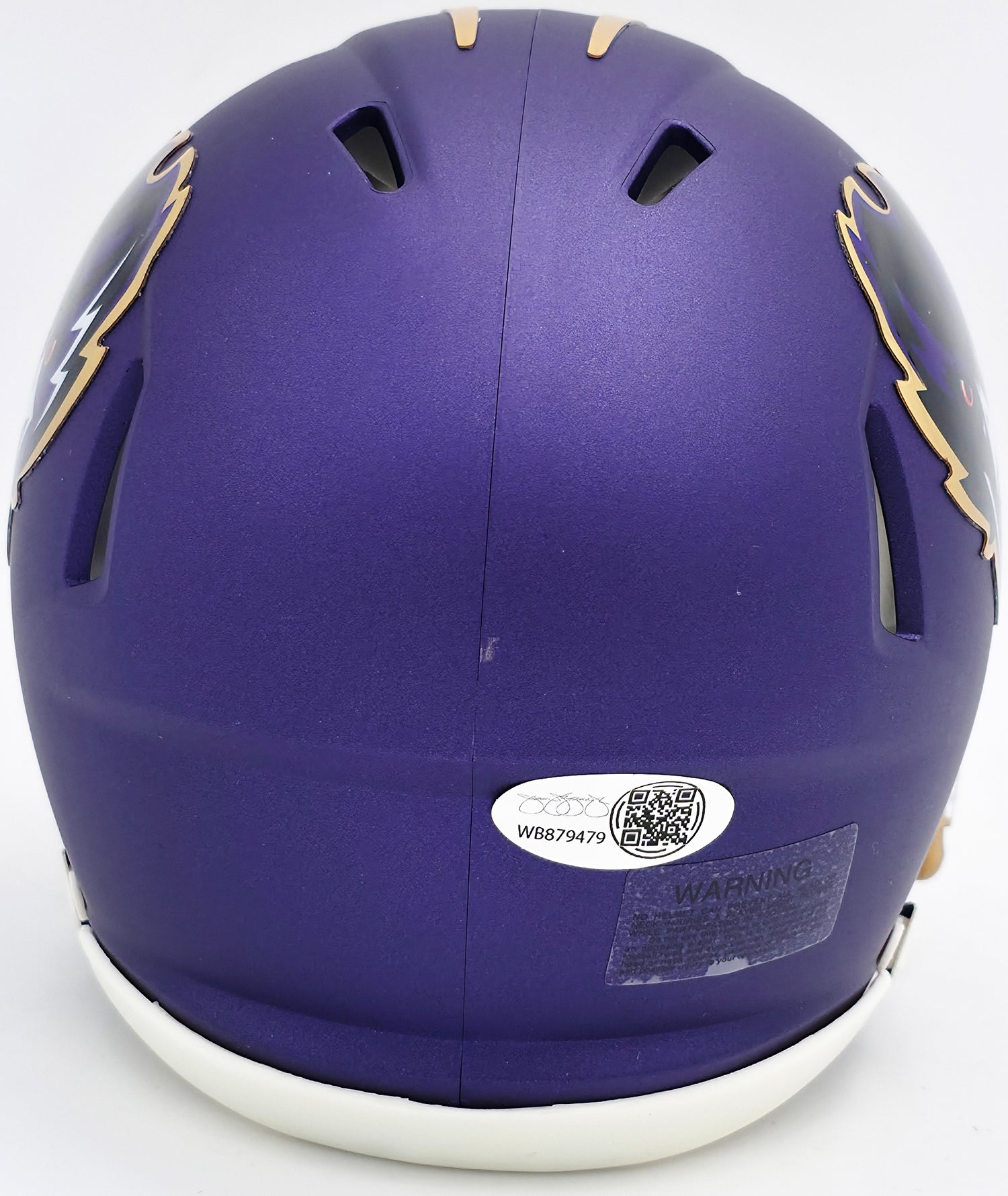 Terrell Suggs Autographed Baltimore Ravens 2024 Alt Purple Speed Mini Helmet JSA QR Stock #241394