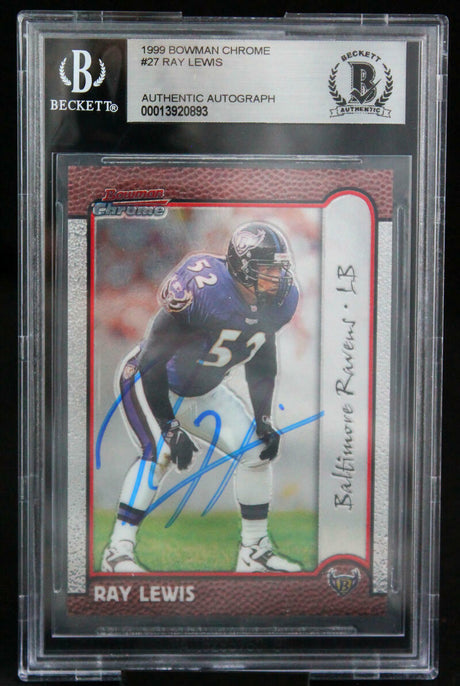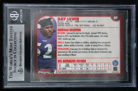 1999 Bowman Chrome #27 Ray Lewis Baltimore Ravens BGS Autograph 10