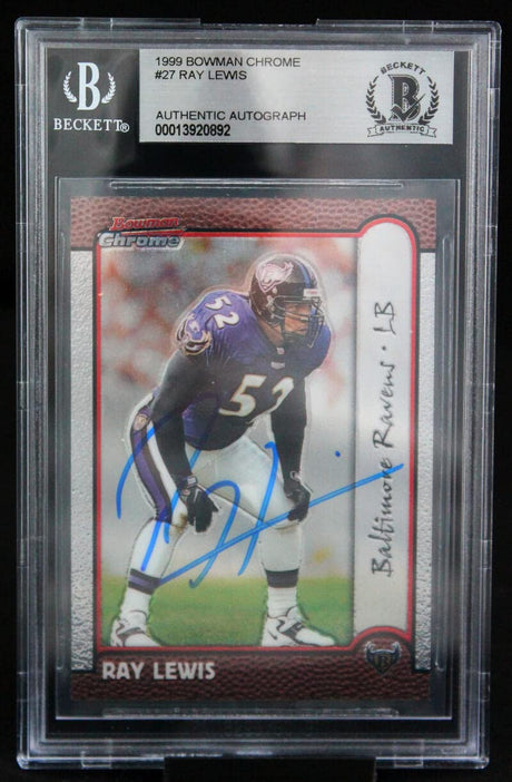 1999 Bowman Chrome #27 Ray Lewis Baltimore Ravens BGS Autograph 10