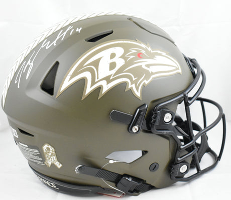 Kyle Hamilton Autographed Ravens F/S Salute Speed Flex Helmet - Beckett W Holo