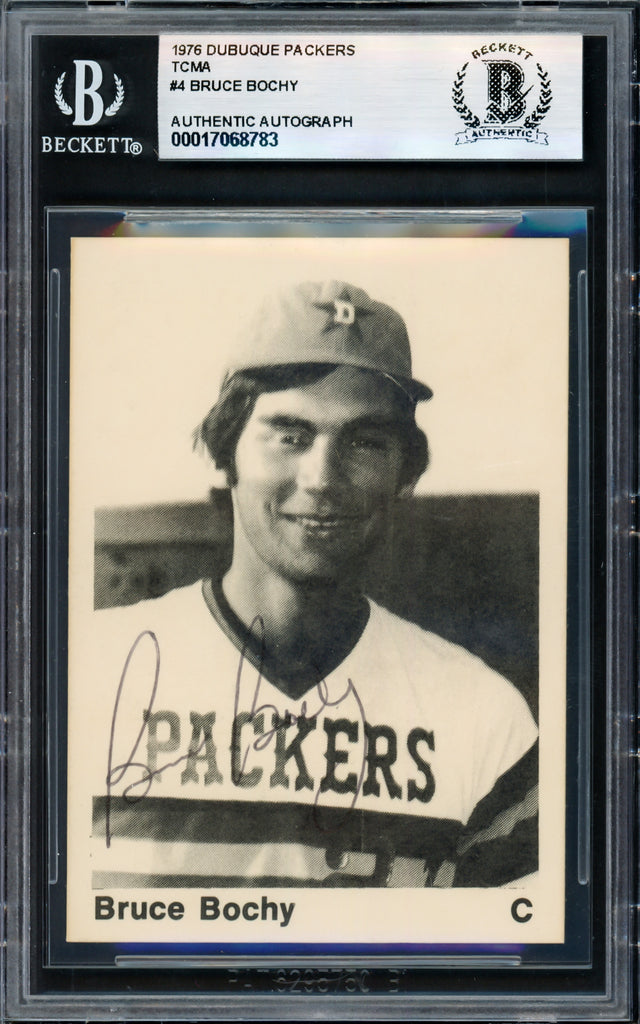 Bruce Bochy Autographed 1976 TCMA Rookie Card #4 Dubuque Packers Beckett BAS #17068783