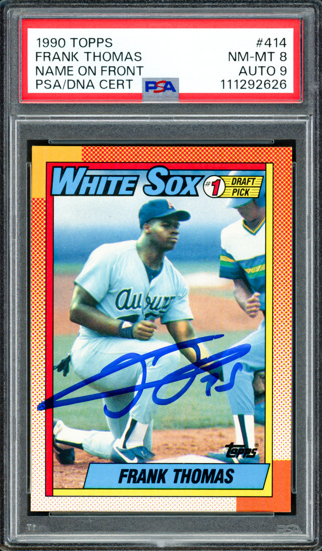 Frank Thomas Autographed 1990 Topps Rookie Card #414 Chicago White Sox PSA 8 Auto Grade Mint 9 PSA/DNA #111292626