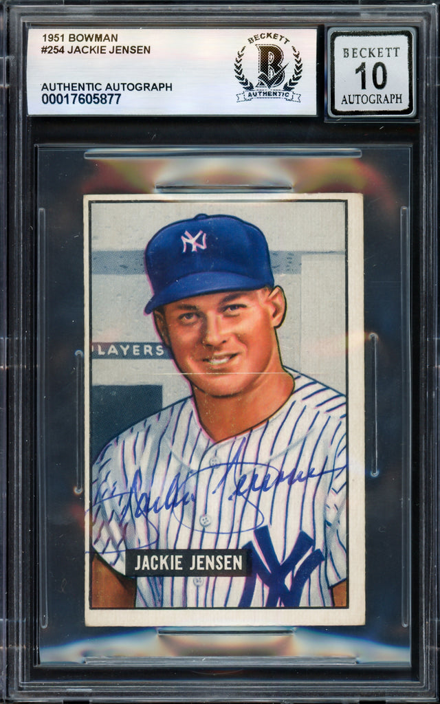 Jackie Jensen Autographed 1951 Bowman Rookie Card #254 New York Yankees Auto Grade Gem Mint 10 Beckett BAS #17605877