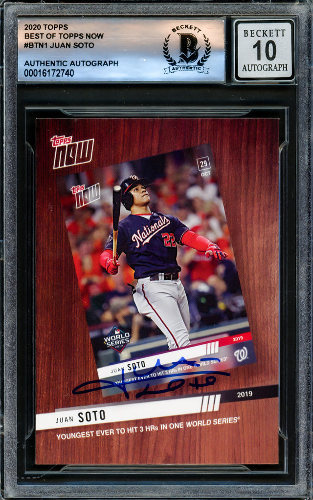 Juan Soto Autographed 2020 Topps Now Card #BTN-1 New York Mets Auto Grade Gem Mint 10 Beckett BAS #16172740