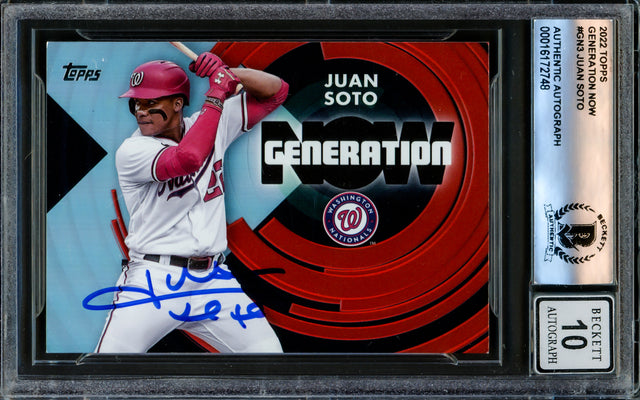 Juan Soto Autographed 2022 Topps Generation Now Card #GN-3 New York Mets Auto Grade Gem Mint 10 Beckett BAS #16172748