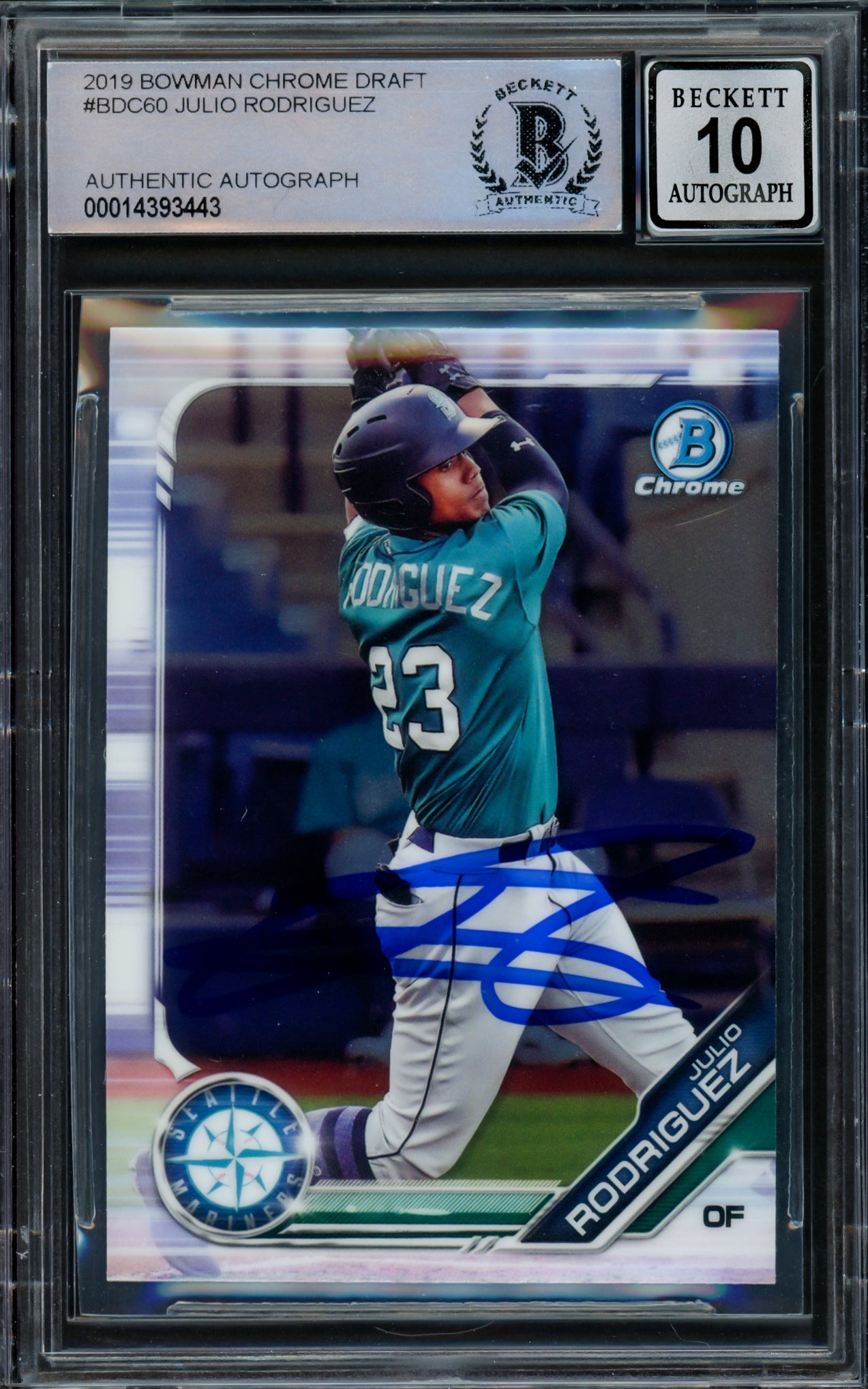 Julio Rodriguez Autographed 2019 Bowman Chrome Draft Rookie Card #BDC60 Seattle Mariners Auto Grade Gem Mint 10 Beckett BAS #14393443