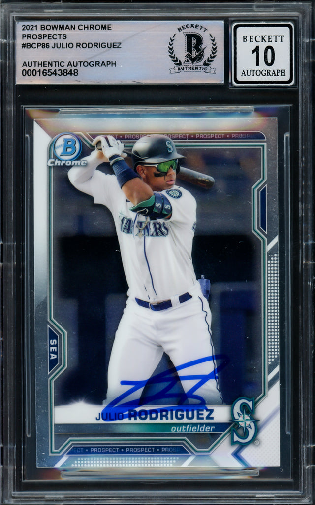 Julio Rodriguez Autographed 2021 Bowman Chrome Prospects Rookie Card #BCP86 Seattle Mariners Auto Grade Gem Mint 10 Beckett BAS #16543848