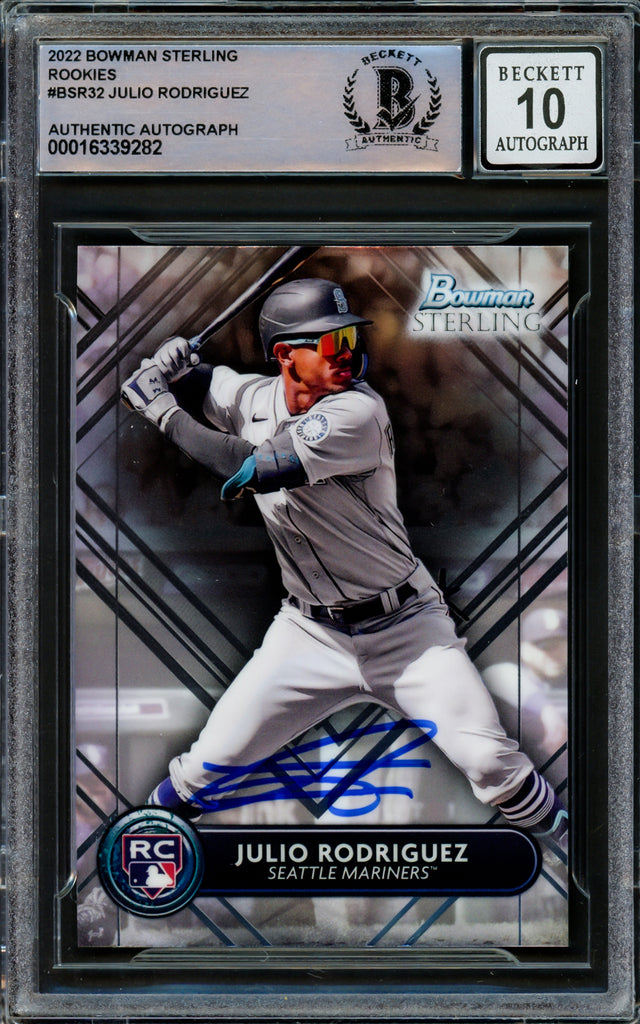 Julio Rodriguez Autographed 2022 Bowman Sterling Rookie Card #BSR32 Seattle Mariners Auto Grade Gem Mint 10 Beckett BAS #16339282