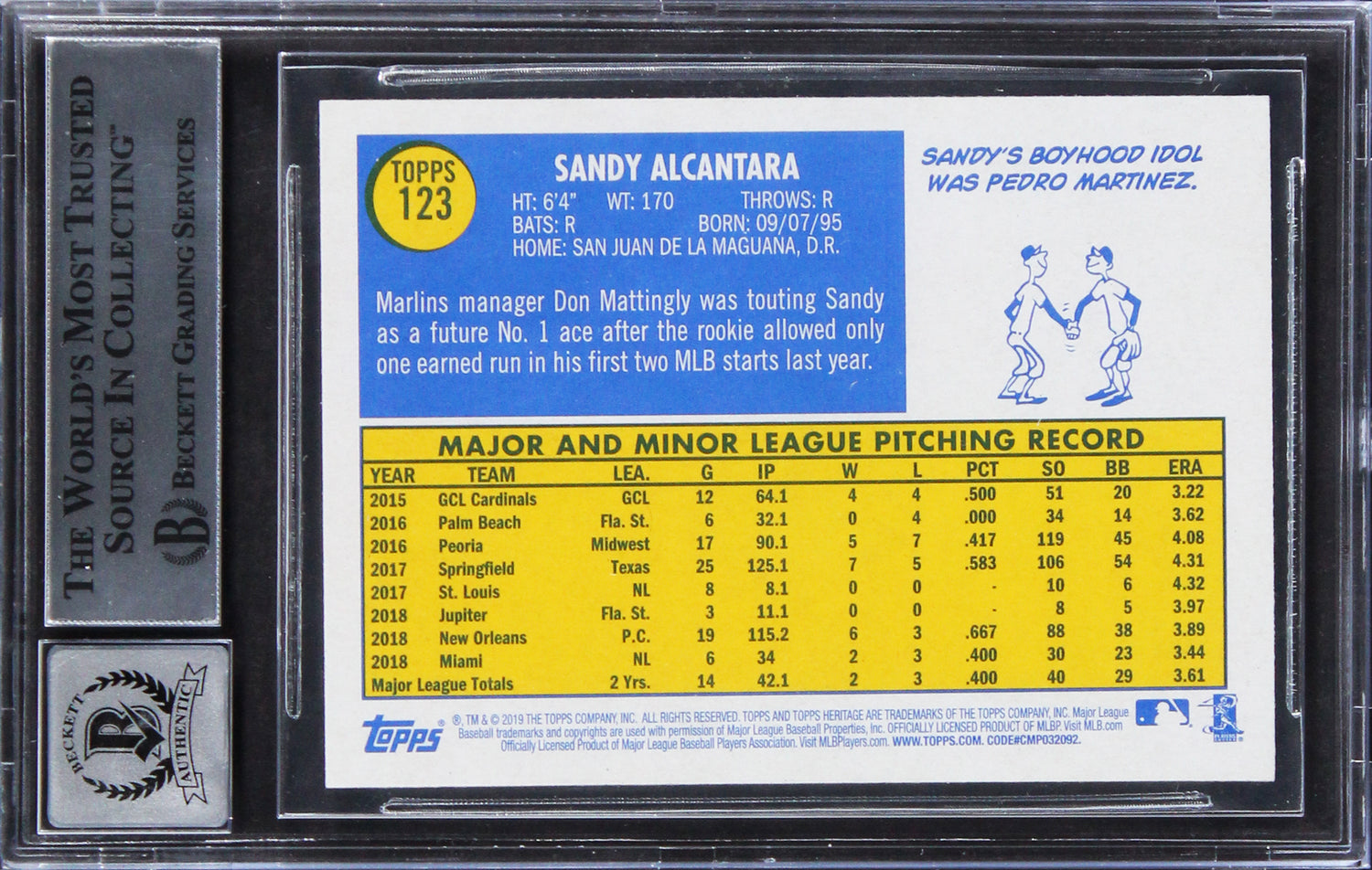 Marlins Sandy Alcantara Signed 2019 Topps Heritage #123 Card Auto 10! BAS Slab