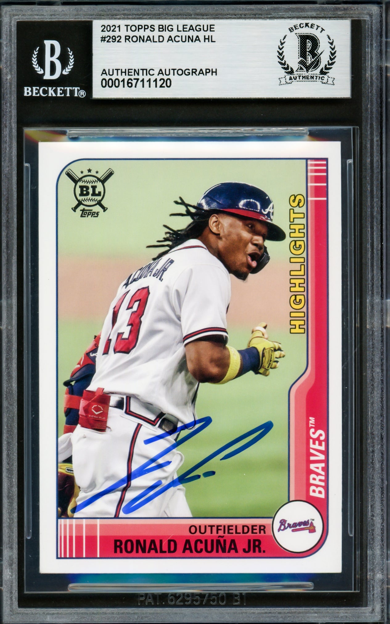 Ronald Acuna Jr. Autographed 2021 Topps Big League Card #292 Atlanta Braves Beckett BAS #16711120