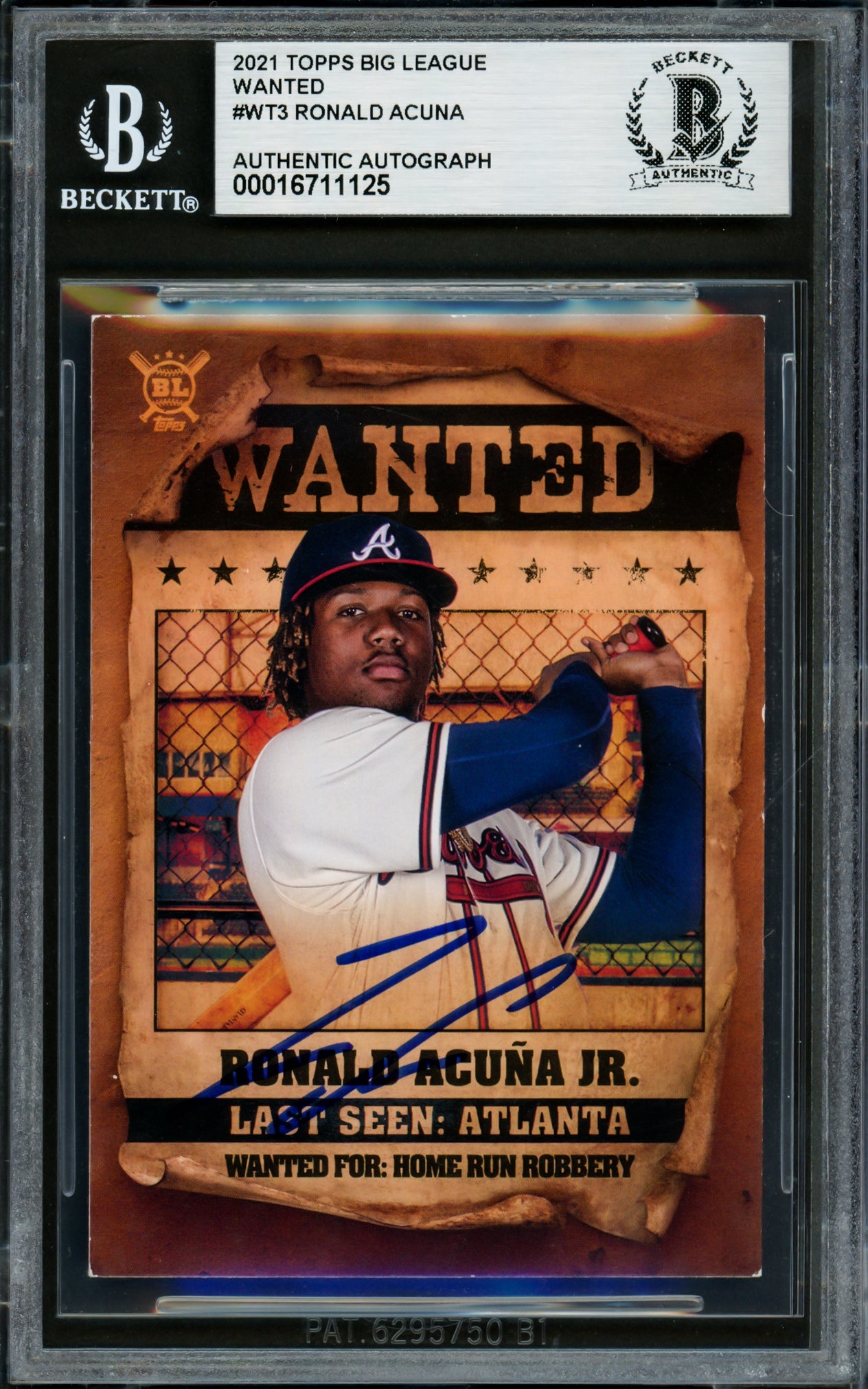Ronald Acuna Jr. Autographed 2021 Topps Big League Wanted Card #WT3 Atlanta Braves Beckett BAS #16711125