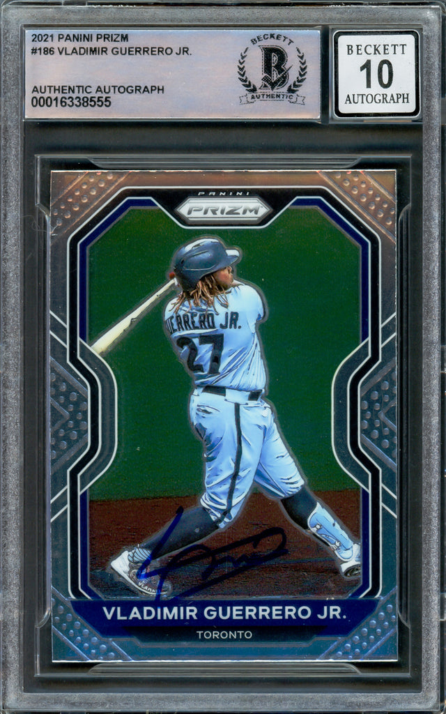 Vladimir Guerrero Jr. Autographed 2021 Panini Prizm Card #186 Toronto Blue Jays Auto Grade Gem Mint 10 Beckett BAS Stock #222868