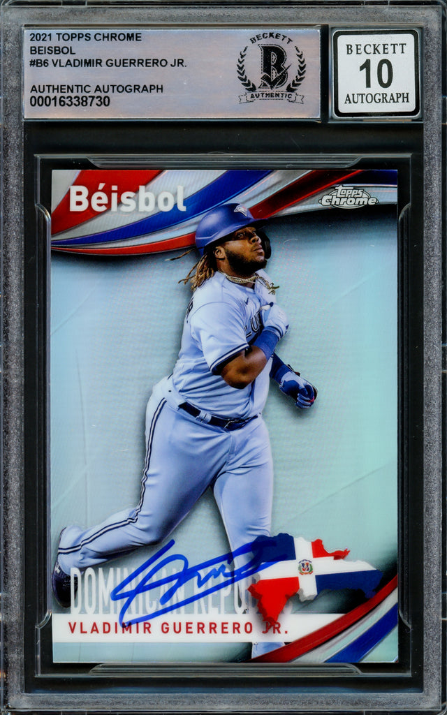 Vladimir Guerrero Jr. Autographed 2021 Topps Chrome Beisbol Card #B-6 Toronto Blue Jays Auto Grade Gem Mint 10 Beckett BAS #16338730