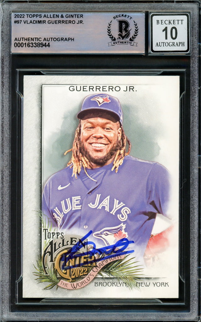 Vladimir Guerrero Jr. Autographed 2022 Topps Allen & Ginter Card #97 Toronto Blue Jays Auto Grade Gem Mint 10 Beckett BAS Stock #222876