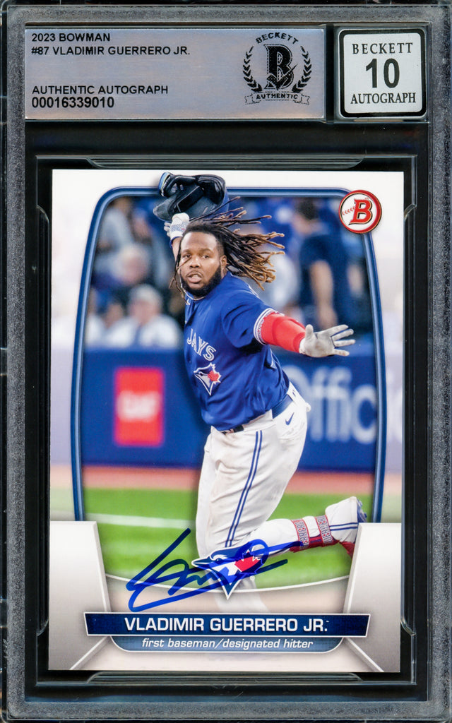 Vladimir Guerrero Jr. Autographed 2023 Bowman Card #87 Toronto Blue Jays Auto Grade Gem Mint 10 Beckett BAS Stock #222879