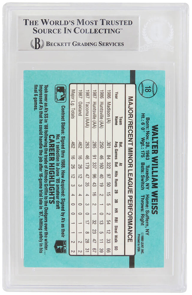 This slabbed and certified card is the perfect addition to any baseball memorabilia collection. Whether you're a lifelong A’s fan, a vintage card collector, or looking for a valuable investment, this signed Walt Weiss rookie card is a great find. Secure yours today before it's gone!
