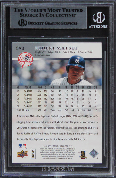 Yankees Hideki Matsui Authentic Signed 2008 Upper Deck #593 Card BAS Slabbed