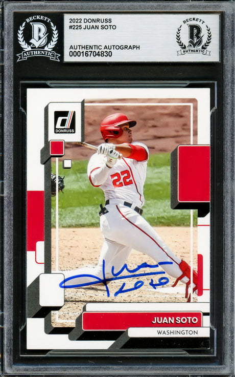 Very low stock (1 unit)$99Unit price /UnavailableJuan Soto Autographed 2022 Donruss Variations Card #225 New York Mets Beckett BAS #16704850