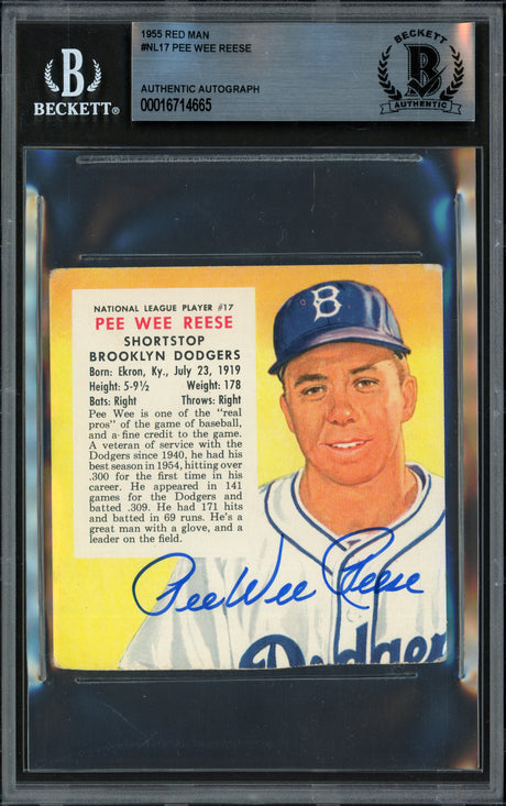 Pee Wee Reese Autographed 1953 Red Man Card #NL17 Brooklyn Dodgers Beckett BAS #16714665