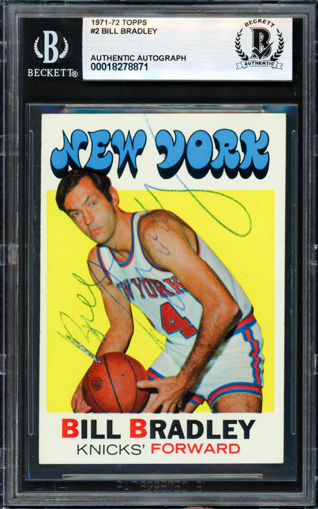 Bill Bradley Autographed 1970-71 Topps Card #7 New York Knicks (Light) Beckett BAS #18281293