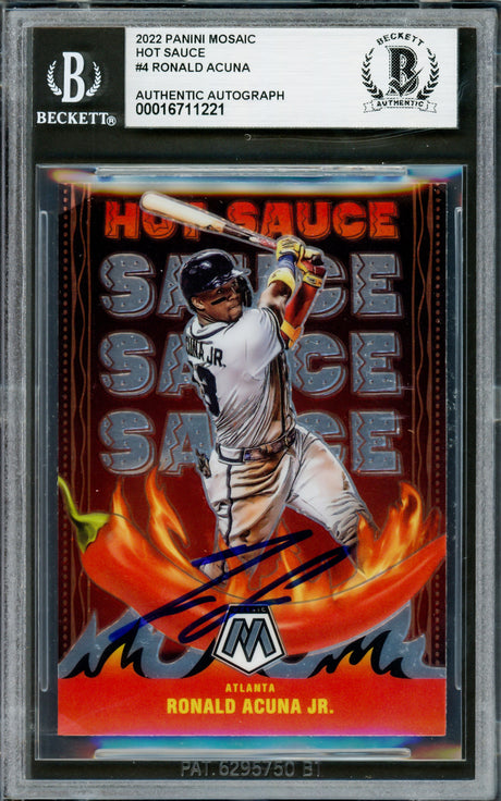 Very low stock (1 unit)$99Unit price /UnavailableRonald Acuna Jr. Autographed 2022 Topps Fire Card #1 Atlanta Braves Beckett BAS #16711381