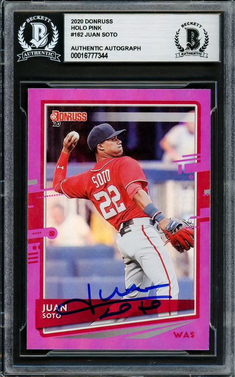 Juan Soto Autographed 2020 Donruss Holo Pink Variation Card #162 New York Mets Beckett BAS #16703973