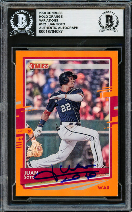 Juan Soto Autographed 2020 Donruss Holo Orange Card #162 New York Mets Beckett BAS #16704087