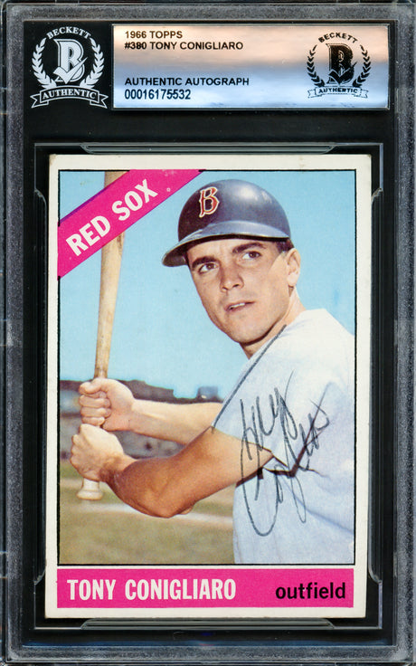 Tony Conigliaro Autographed 1966 Topps Card #380 Boston Red Sox Beckett BAS #16175532