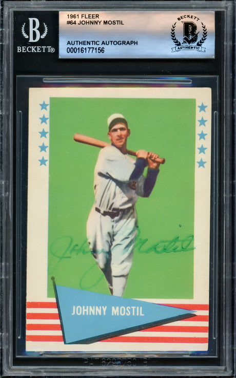 Johnny Mostil Autographed 1961 Fleer Card #64 Chicago White Sox Beckett BAS #16177156
