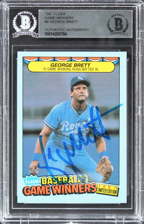 Royals George Brett Authentic Signed 1987 Fleer Game Winners #6 Card BAS Slabbed
