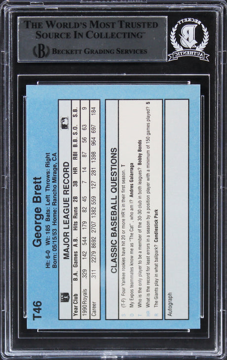 Royals George Brett Authentic Signed 1991 Classic 1 #T46 Card BAS Slabbed