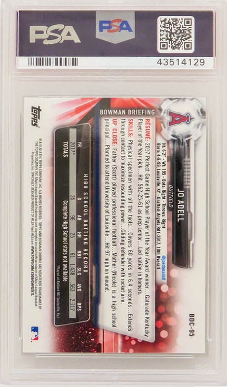 Jo Adell (Los Angeles Angels) 2017 Bowman Chrome Baseball #BDC95 RC Rookie Card - PSA 10 GEM MINT