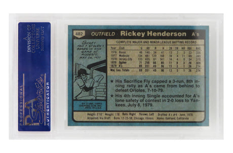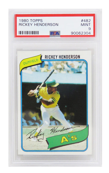 Rickey Henderson (Oakland A's) 1980 Topps Baseball #482 RC Rookie Card - PSA 9 MINT (B)