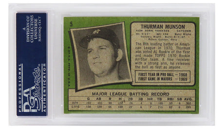 Thurman Munson (New York Yankees) 1971 Topps All Star Rookie Card #5 (2nd Year Card) - PSA 7 NM (D)