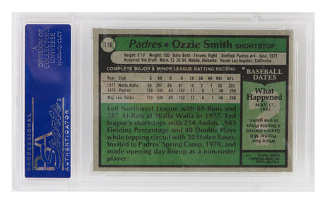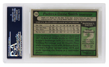 Ozzie Smith (San Diego Padres) 1979 Topps Baseball RC Rookie Card #116 - PSA 8 NM-MT (C)