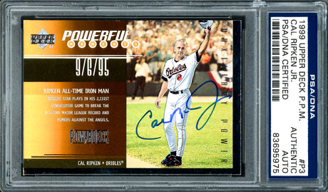 Very low stock (1 unit)$119Unit price /UnavailableCal Ripken Jr. Autographed 1999 Upper Deck P.P.M. Card #P3 Baltimore Orioles PSA/DNA #83695975