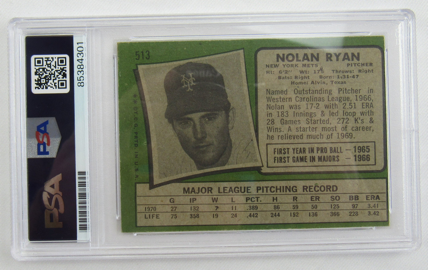 This signed 1971 Topps Nolan Ryan card represents a pivotal moment in his career before his record-breaking strikeout feats and seven no-hitters. Whether you're a lifelong Mets fan, an autograph collector, or an investor in sports memorabilia, this encapsulated piece stands as a valuable addition to any collection.