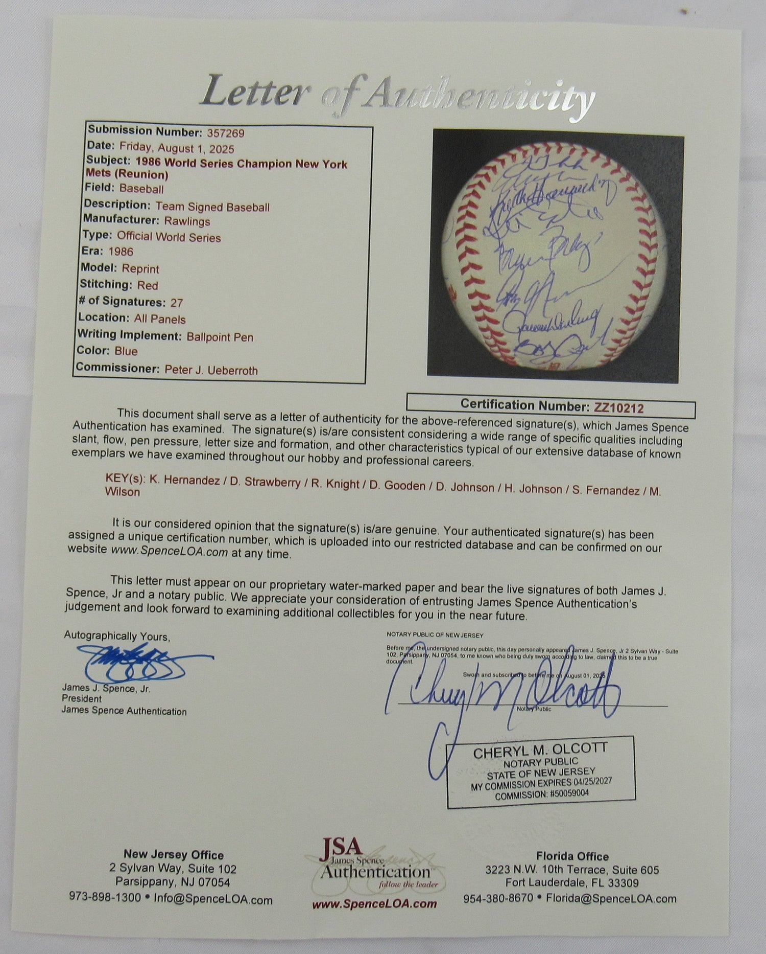- 27 total signatures – Includes autographs from key members of the 1986 Mets World Series team