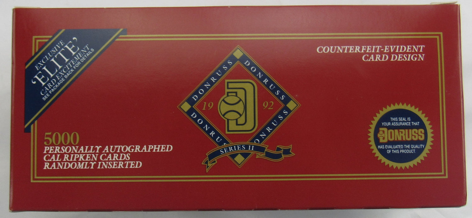 Unlock a piece of baseball history with this 1992 Donruss Series 2 Jumbo Box featuring 24 factory-sealed packs, a must-have for collectors and fans of 90s MLB nostalgia. Though the box is open with no plastic sleeve, all packs inside remain untouched—offering a thrilling chance to uncover rare cards, including a potential Cal Ripken Jr. autograph. Issued during the dynamic early '90s era of baseball card collecting, the 1992 Donruss Series 2 set is known for its vibrant designs and roster of All-Star players. With names like Ken Griffey Jr., Nolan Ryan, and Cal Ripken Jr. in the set, this sealed box offers a golden opportunity to relive the hobby’s boom years or grow your vintage collection.
