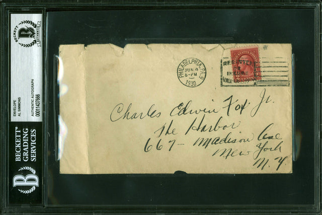 Al Simmons 3.5x6.5 Hand Written Envelope Postmarked June 4 1930 BAS Slabbed is backordered and will ship as soon as it is back in stock.