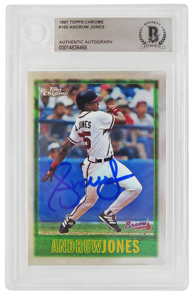 Andruw Jones Signed Atlanta Braves 1997 Topps Chrome Rookie Baseball Card #160 - (Beckett Encapsulated)
