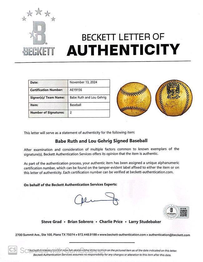 This Babe Ruth & Lou Gehrig autographed baseball represents a golden era of baseball history and is a true testament to the sport’s enduring legacy. Don’t miss the opportunity to own this extraordinary piece of New York Yankees and MLB history.