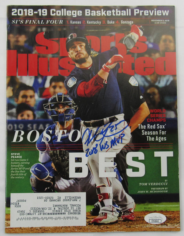 Celebrate one of baseball’s unforgettable World Series performances with this Steve Pearce Signed Auto Sports Illustrated Magazine, authenticated by JSA (Cert #CF42642). A must-have piece for Boston Red Sox fans and collectors of iconic MLB moments, this magazine features Pearce on the cover following his epic showing during the 2018 World Series, where he earned the title of World Series MVP.