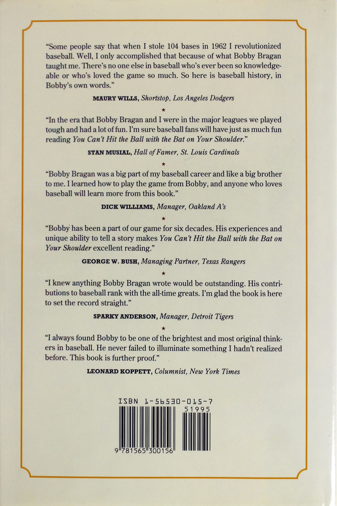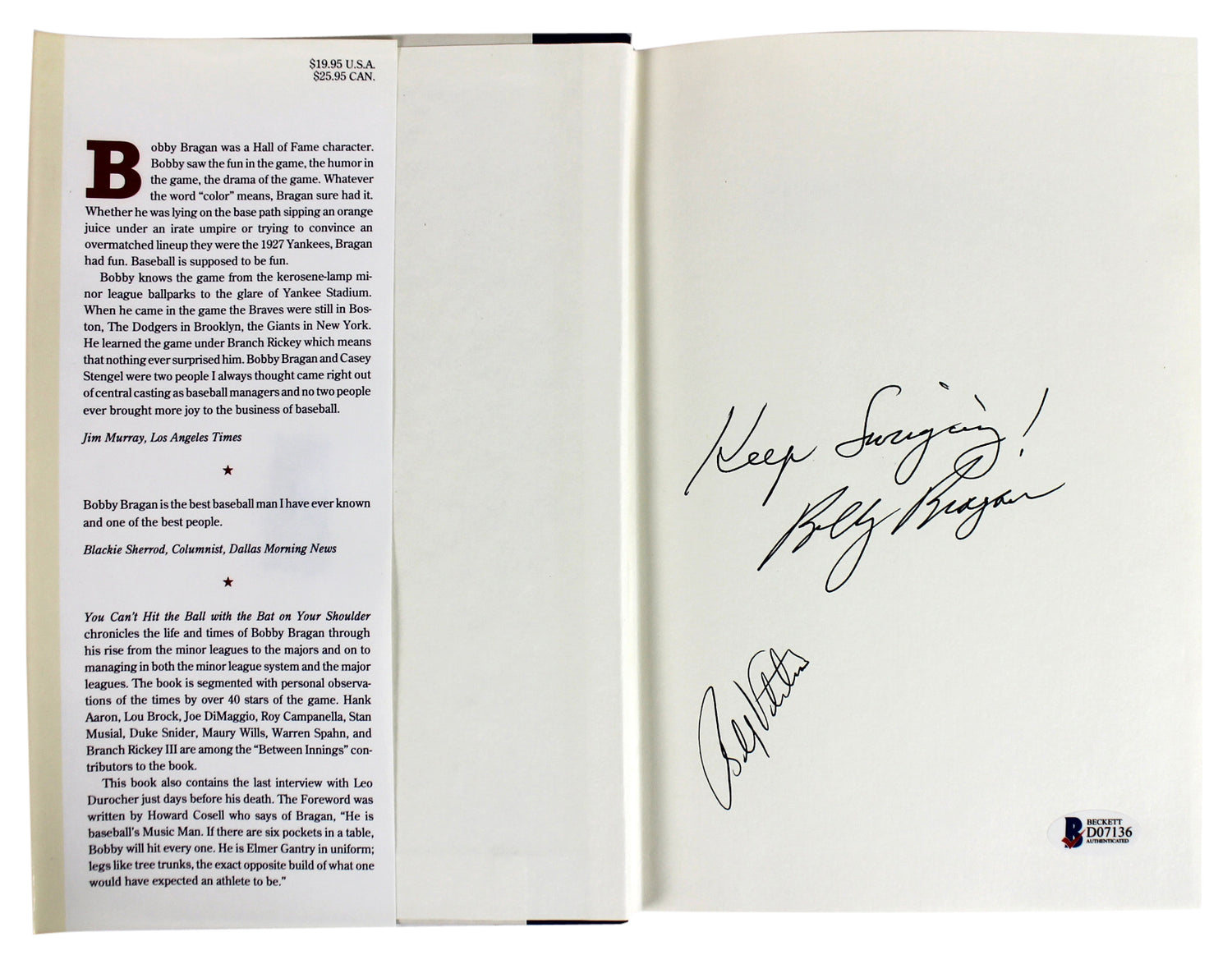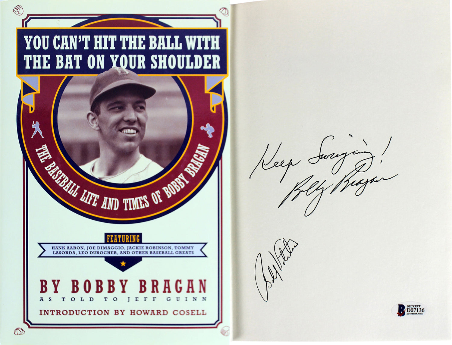 Own a piece of baseball history with this Autographed "You Can't Hit The Ball With The Bat On Your Shoulder" Hard Cover Book, personally signed by Bobby Bragan and Bobby Valentine. A must-have for baseball enthusiasts and collectors, this rare item captures the wisdom and legacy of two iconic figures in the sport.